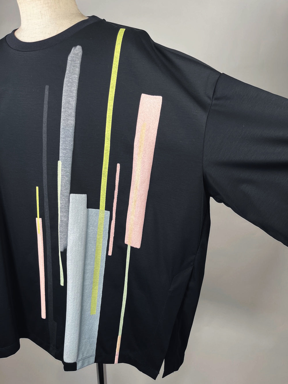 LB23SS-TE03-FPR | MIX PRINT SIDE VENT T-SHIRT | BLACK