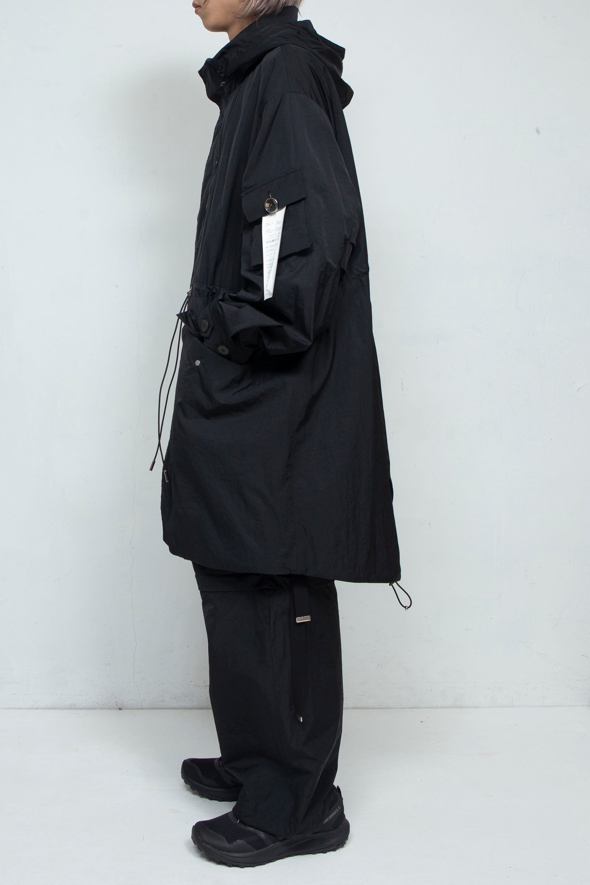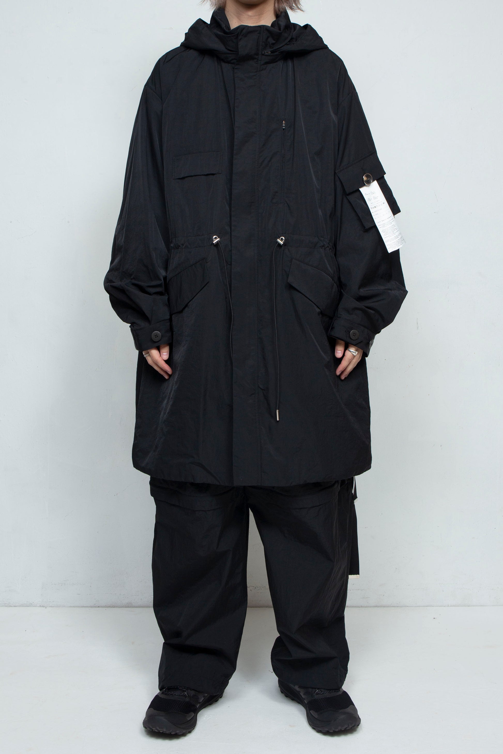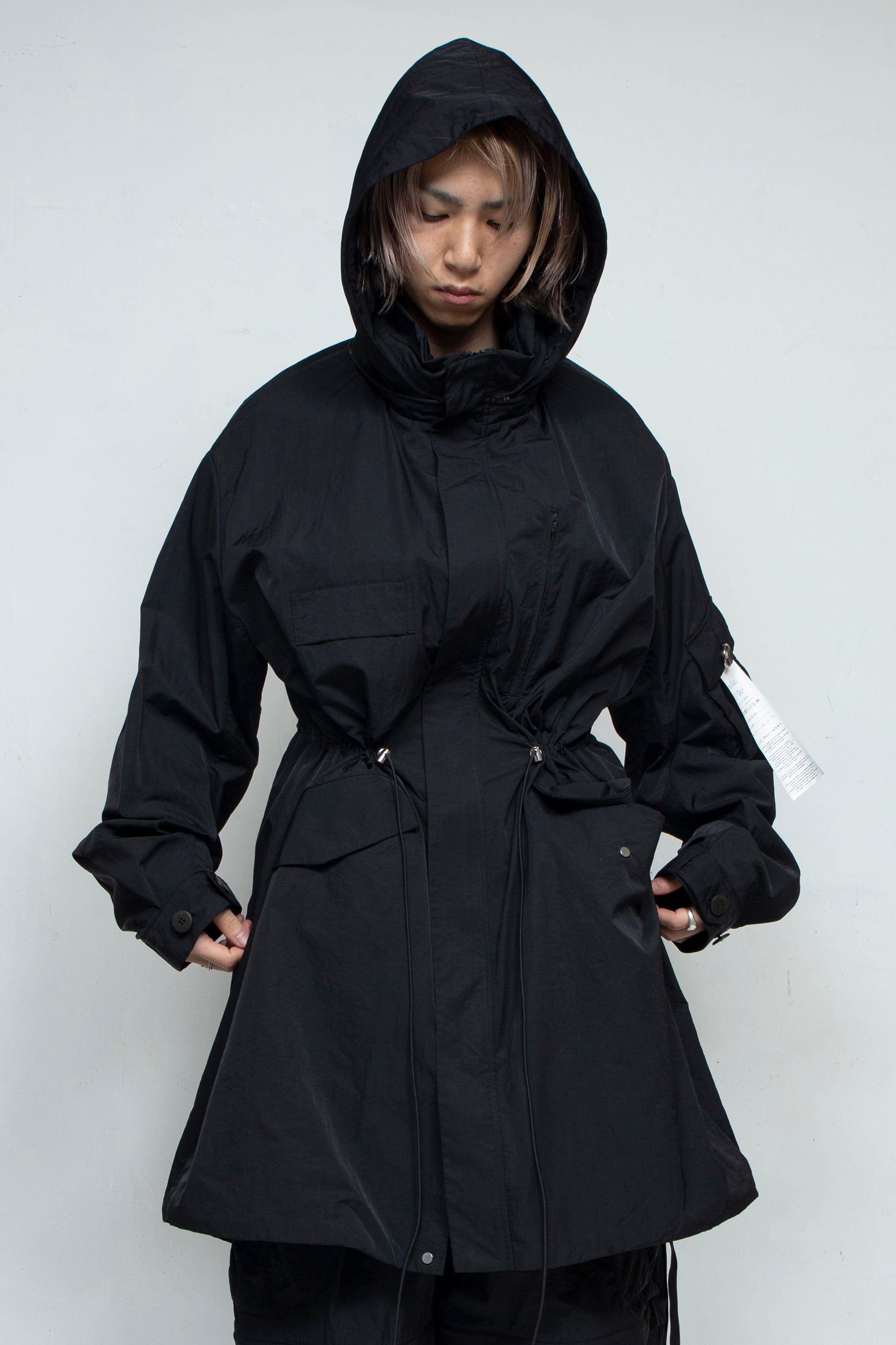 The body of the coat is a fishtail coat that has been made from toile from the very beginning of this season, and in order to take advantage of the high functionality of the material, it has been designed to be functional and can be worn for a long period of time, even until the rainy season.
