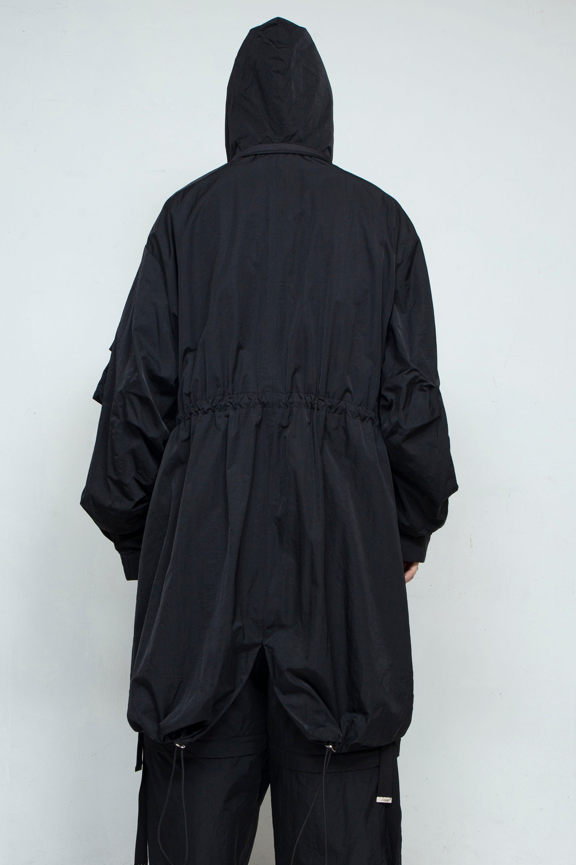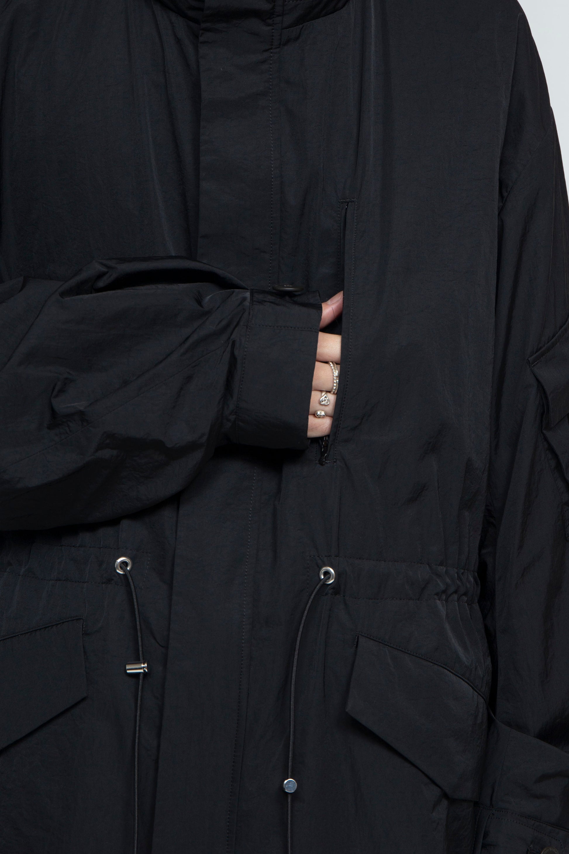 <last> *Limited Edition Fabric* LB25SS-FC01-HCVN | Vintage Nylon Fishtail Spring Coat | Black</last>