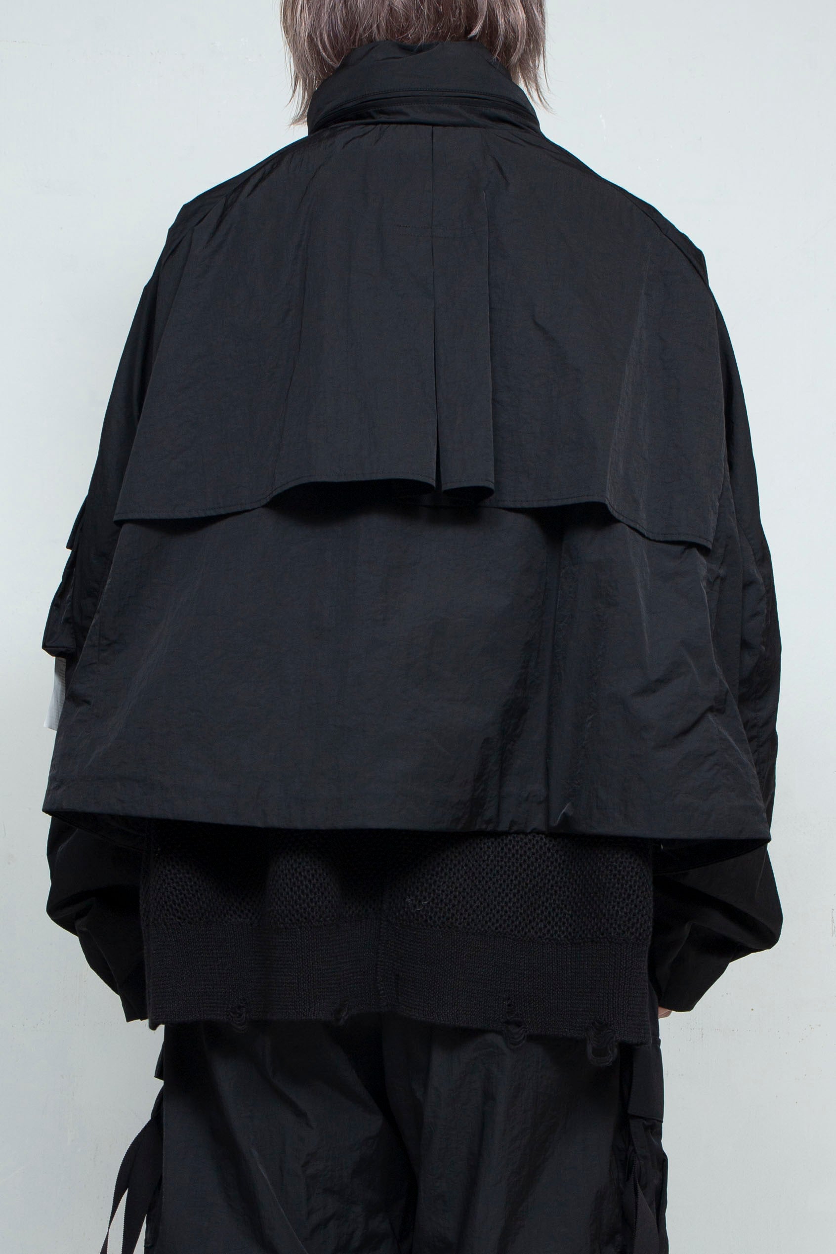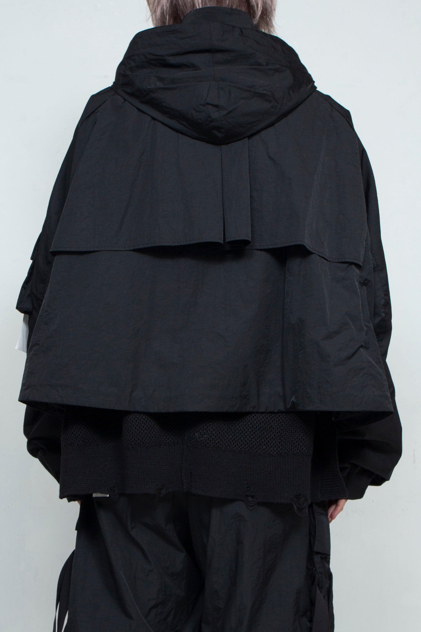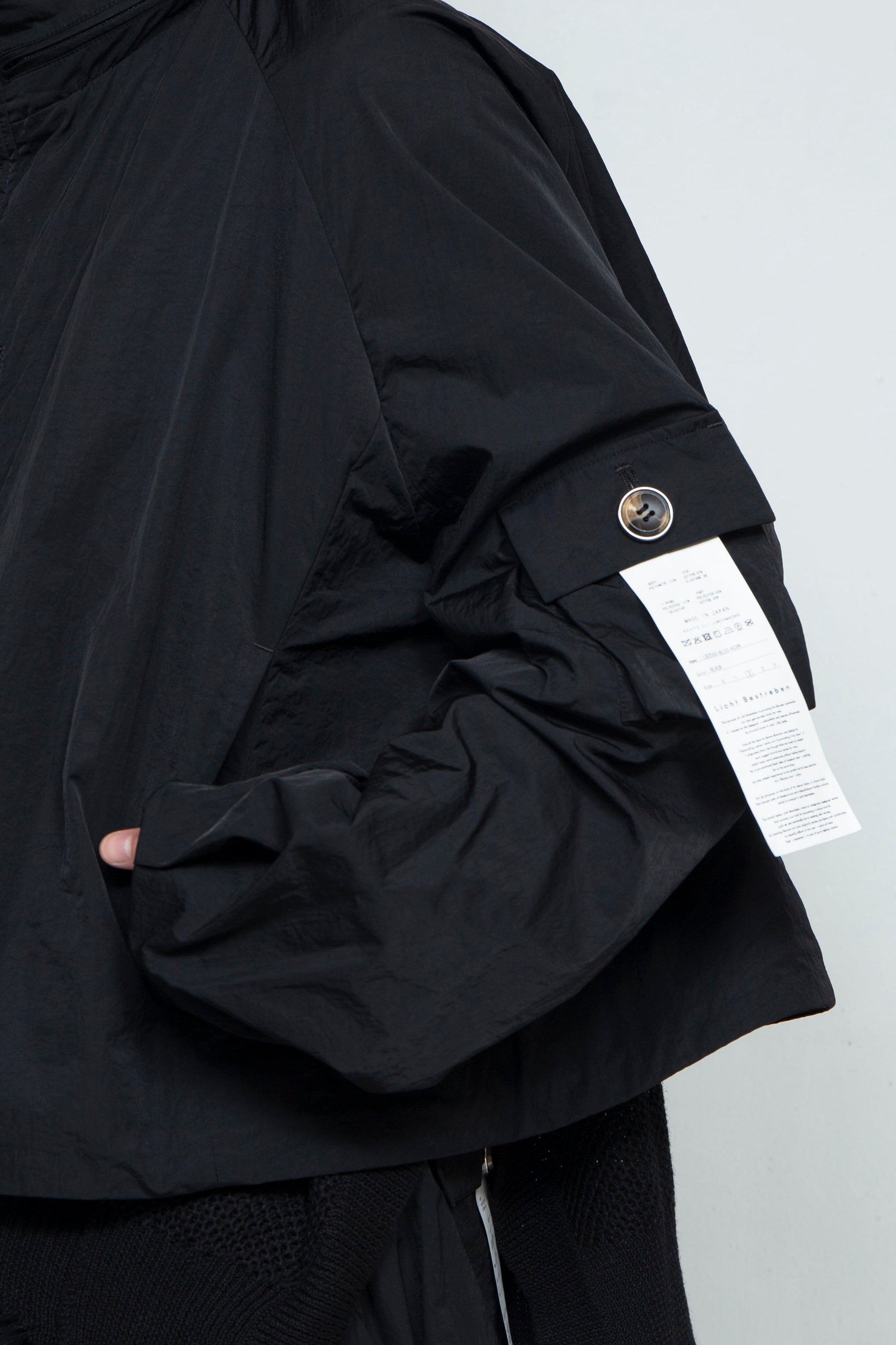 *Limited Fabric* LB25SS-BL03-HCVN | VINTAGE NYLON CROPPED HOODED BLOUSE | BLACK