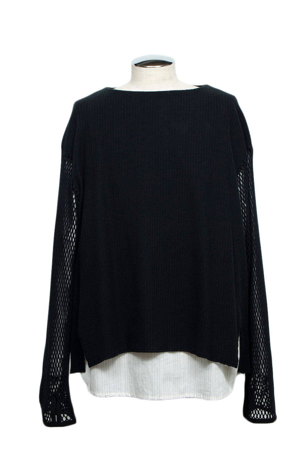 *Limited Color* LB24AW-PO06-FSJ | Faux Layer Boat Neck Pullover | BLACK×WHITE PIN STRIPE