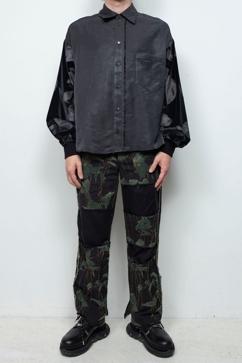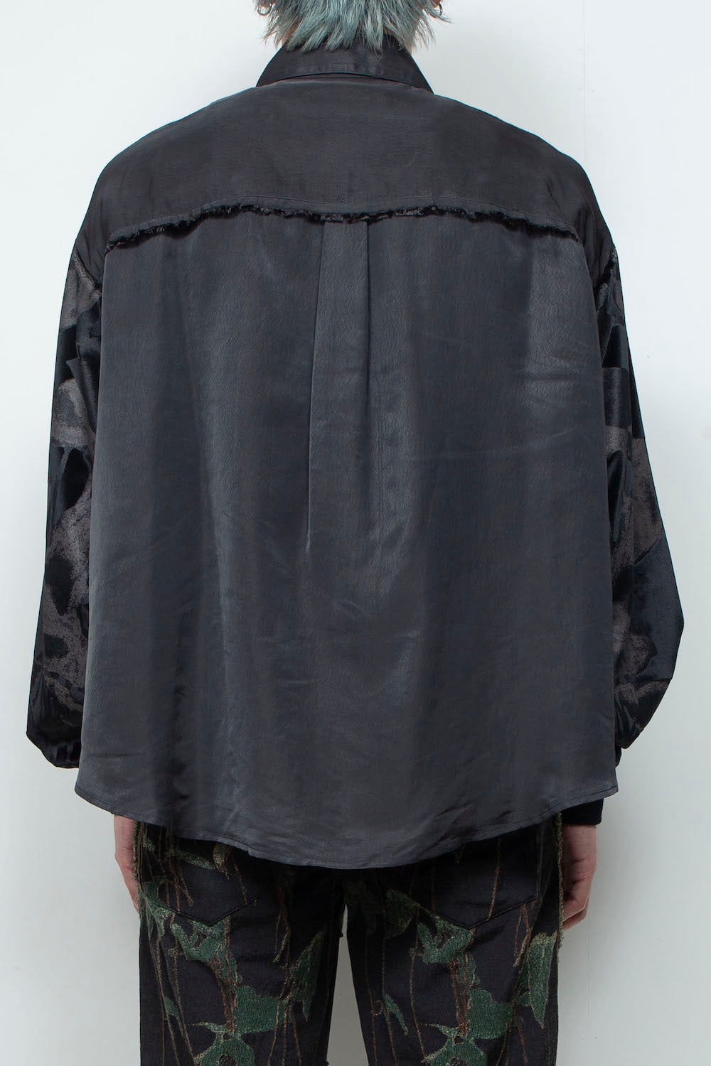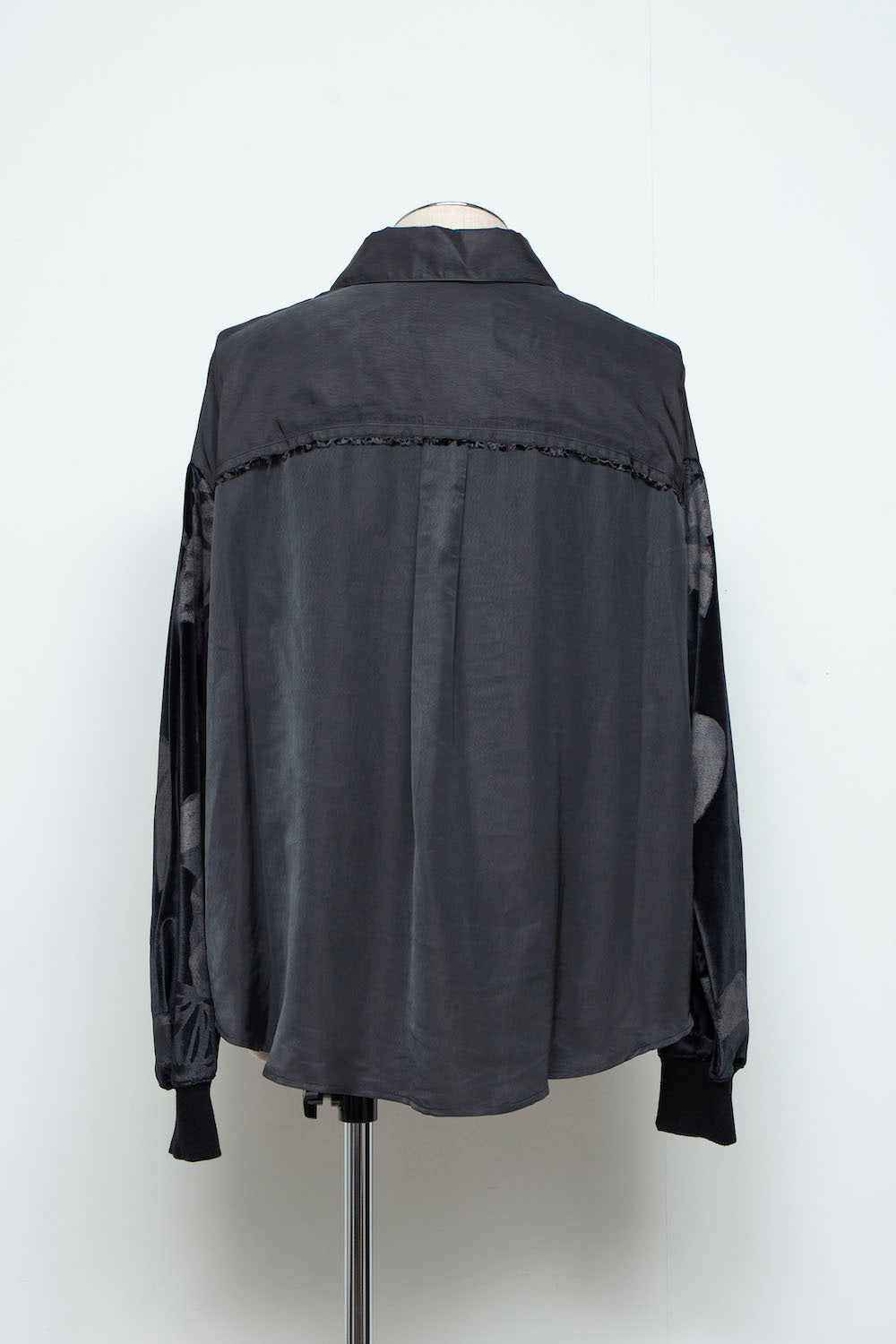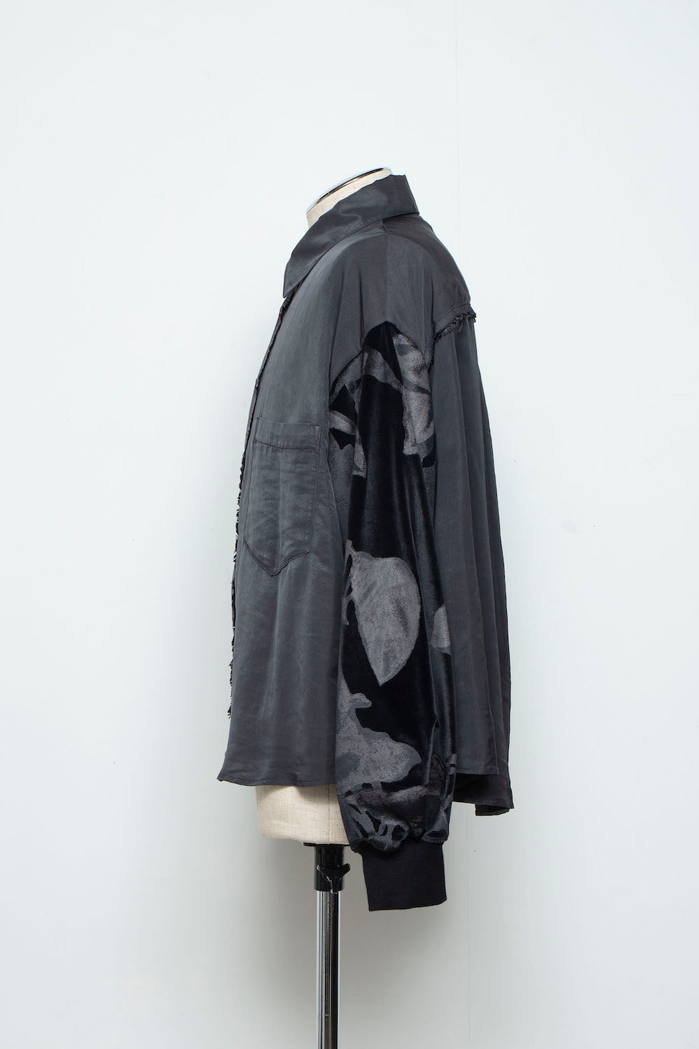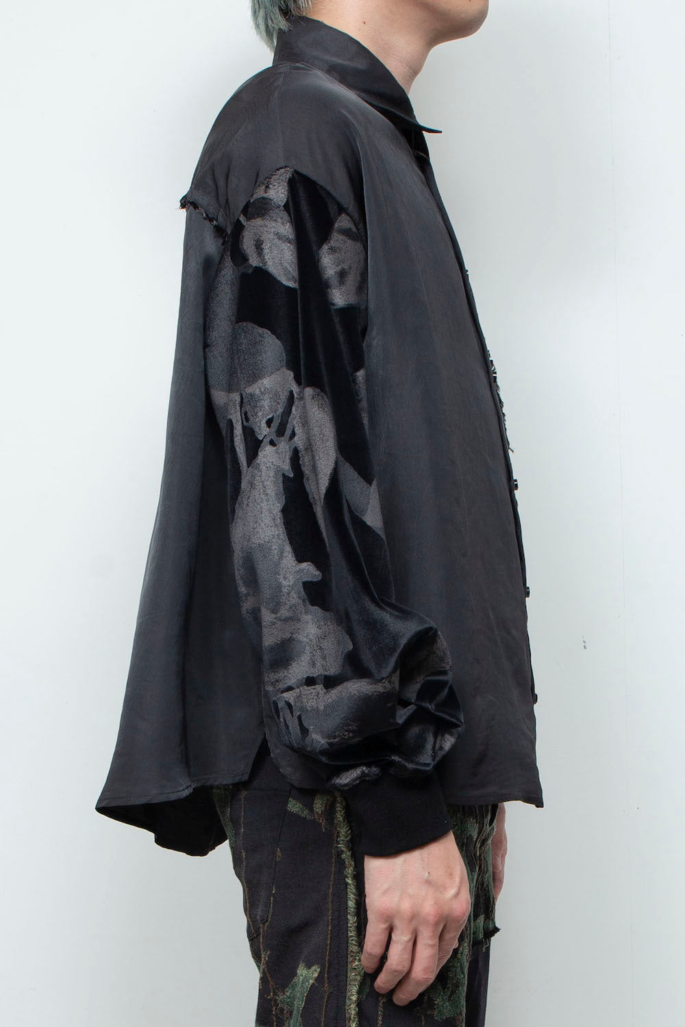 A new jersey sleeve easy shirt made from an original velour jersey with a two-layer special print and a silk-like material.