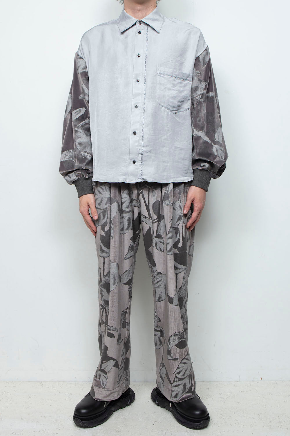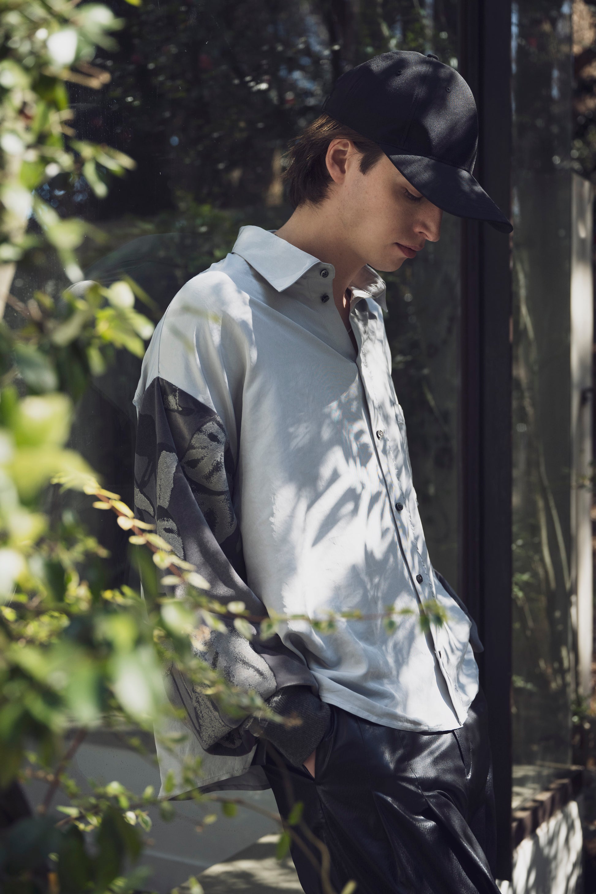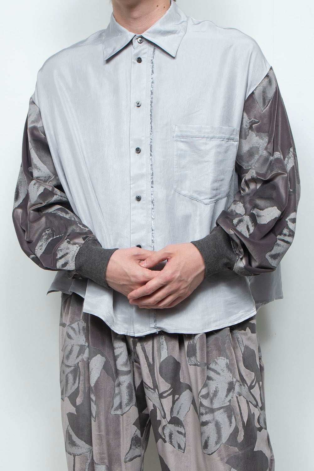 A new jersey sleeve easy shirt made from an original velour jersey with a two-layer special print and a silk-like material.