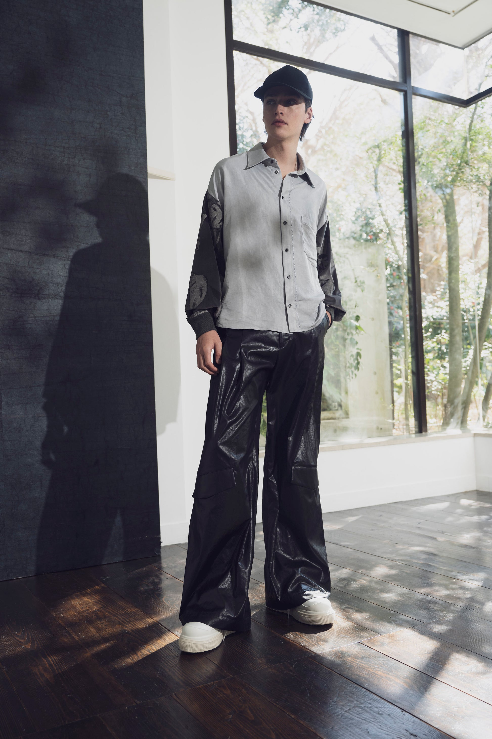 LB25AW-SH08-SPV-PVL | Velour Jersey Sleeve Easy Shirt | SKY GRAY x CHARCOAL