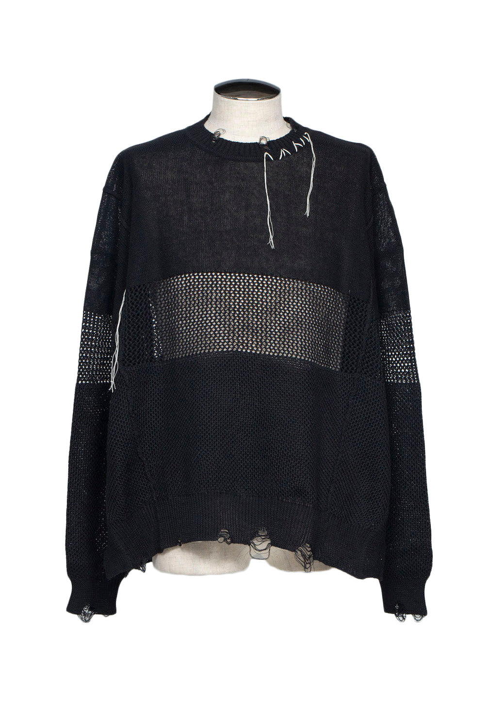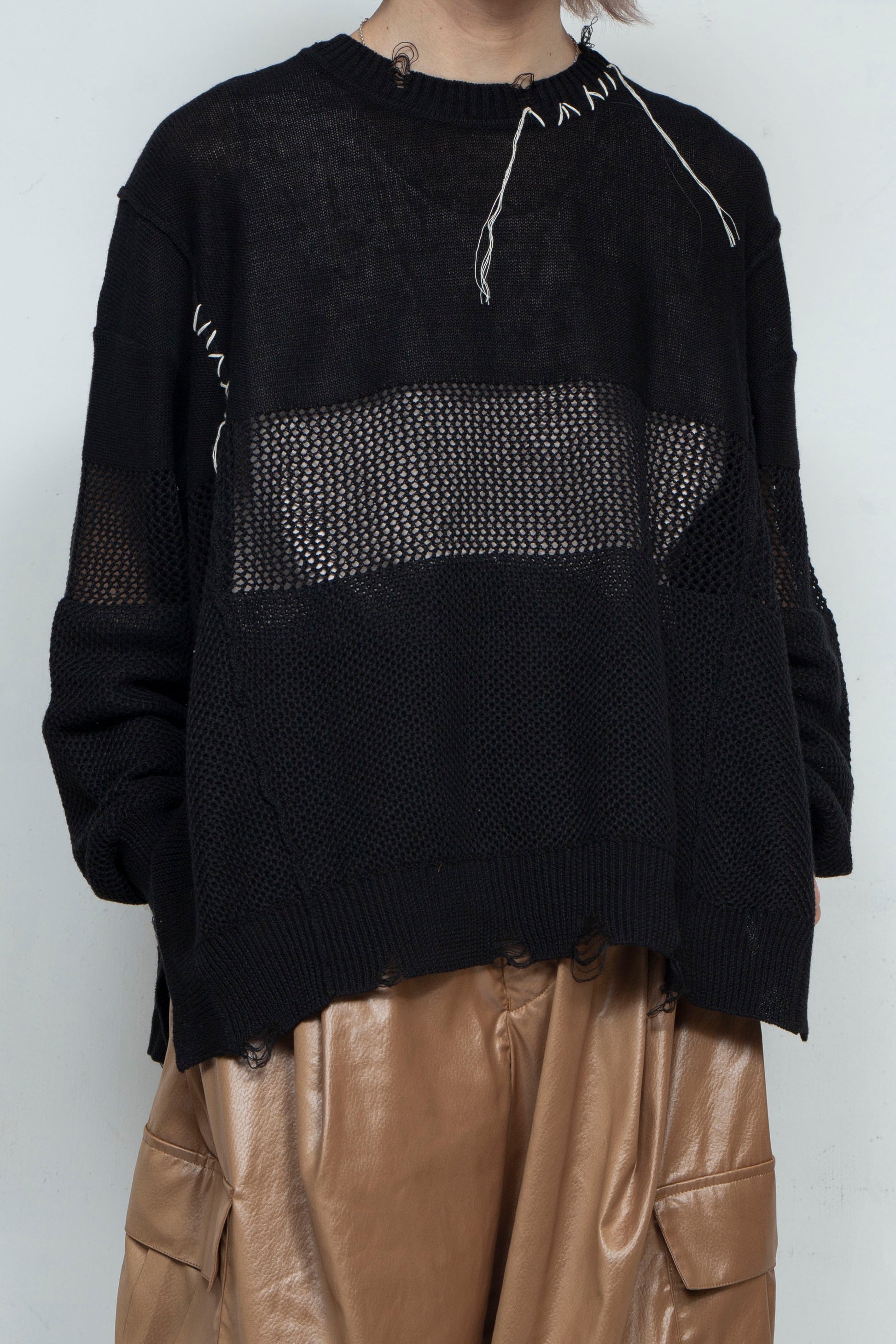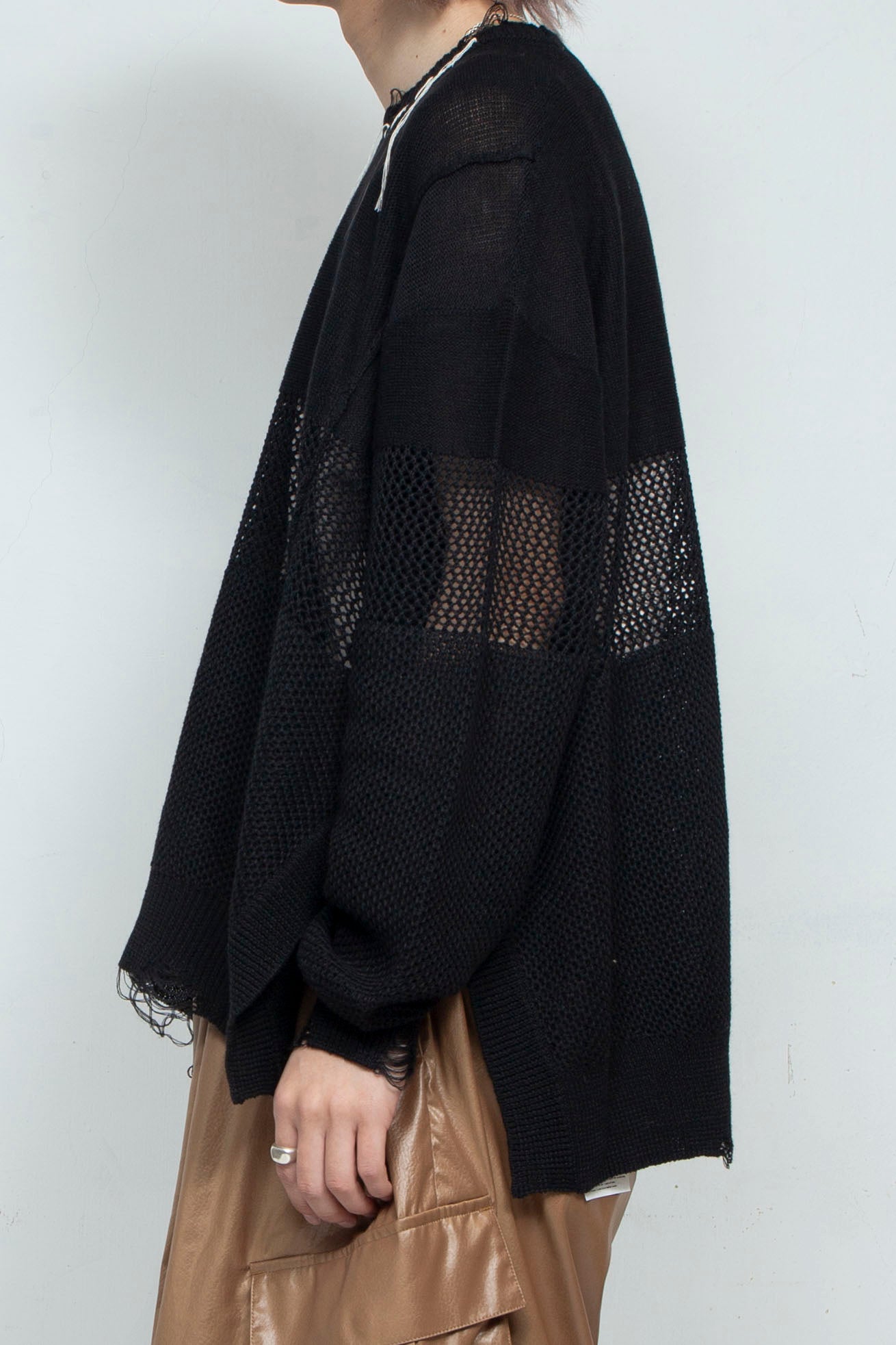 LB25SS-KNTE03 | Hand-stitched crushed summer knit | BLACK