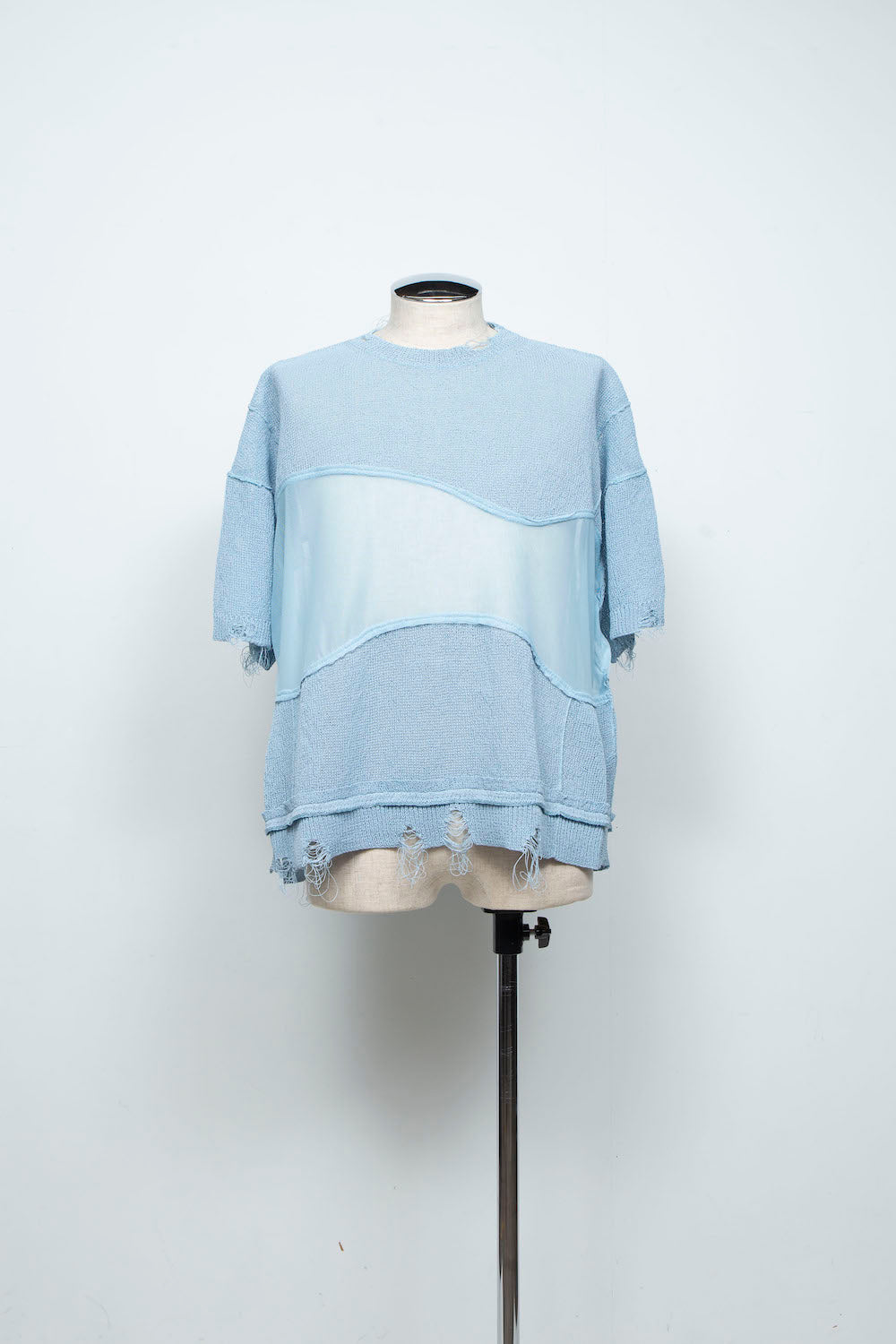 LB26SS-KN10 | アバセルペーパーヤーンリバースクラッシュドセーター | PALE BLUE