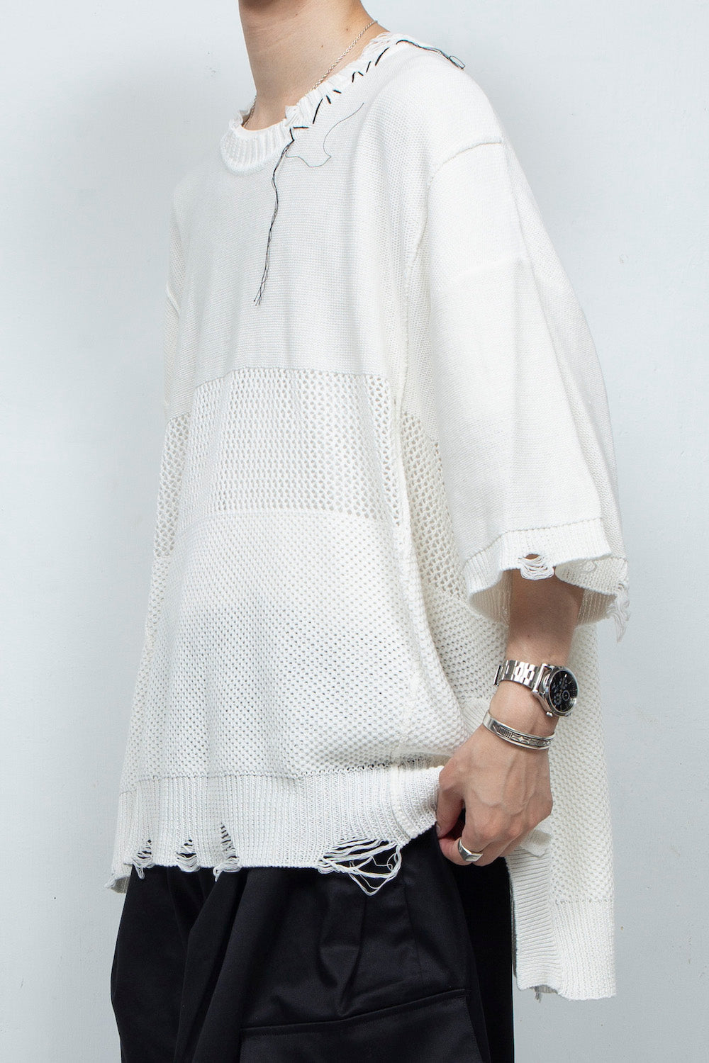 <Back in Stock> *Limited Edition* LBLM-KNTE02 | Crushed Hand-Stitched Knit T-Shirt | OFF WHITE