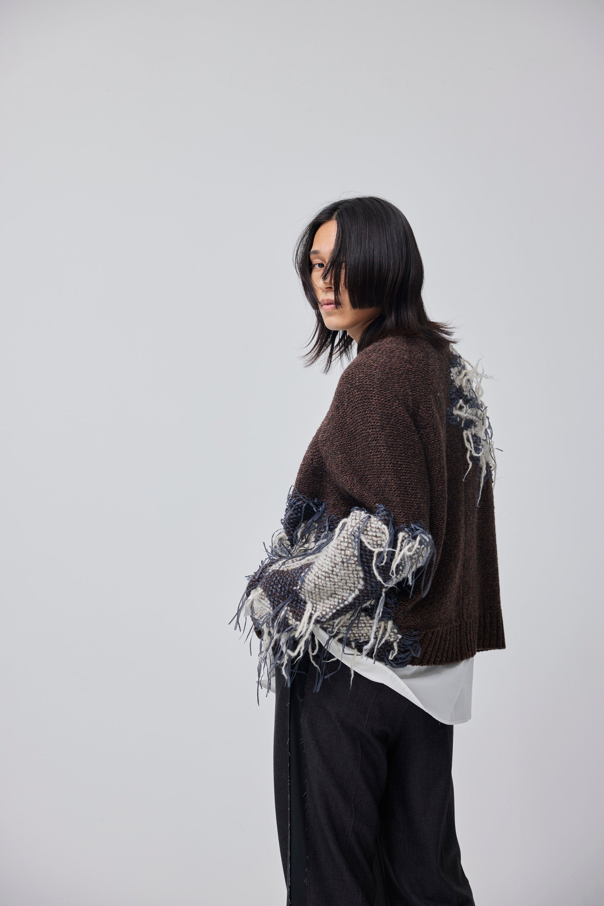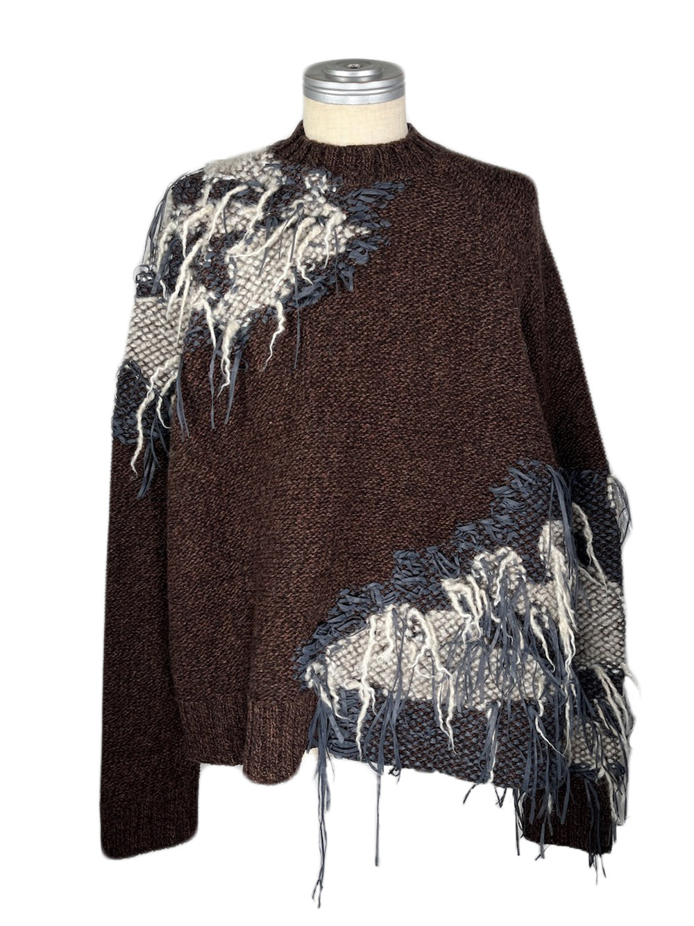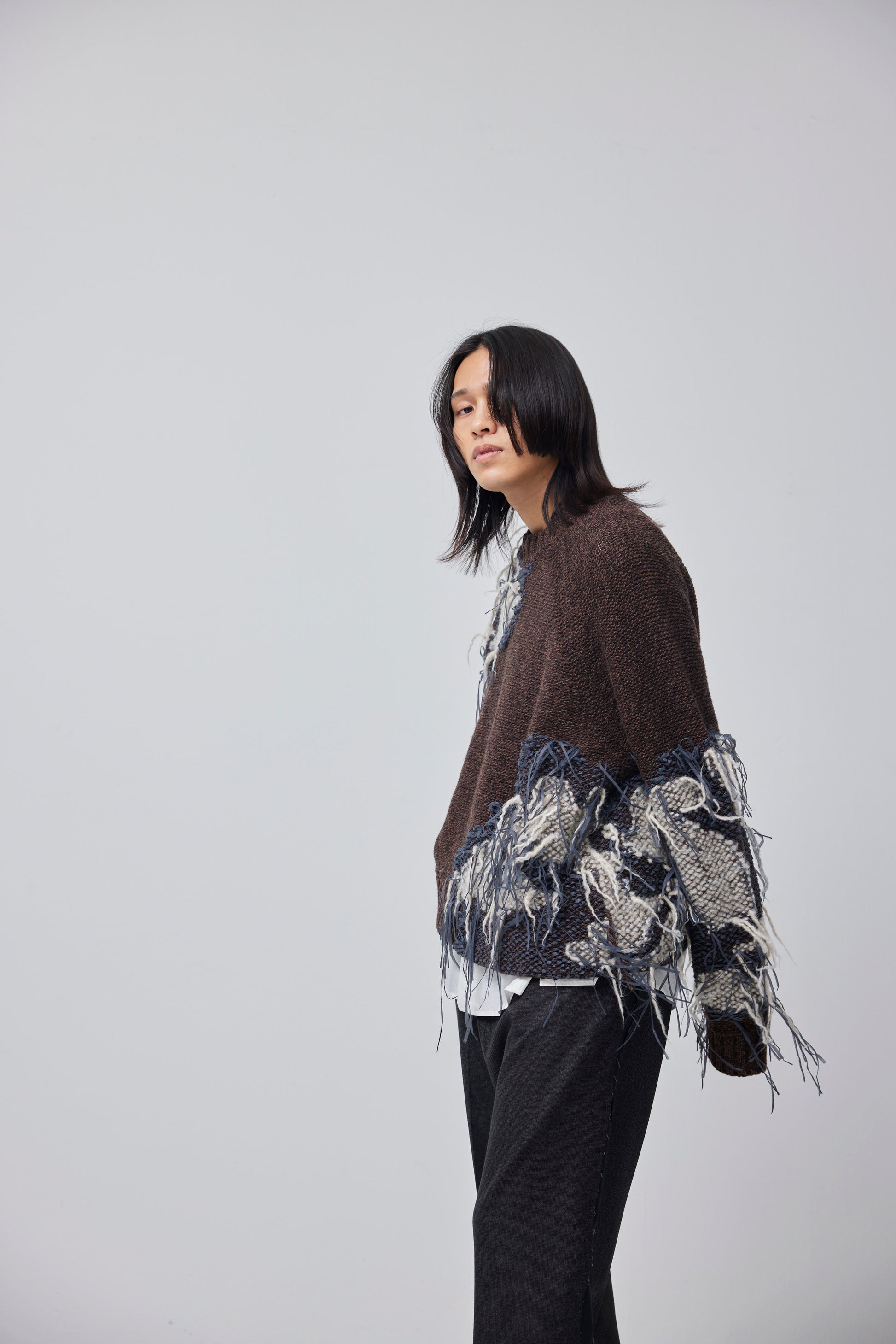 LB23AW-KN01-TRA-DA | スレッドニッティングインターシャセーター | BROWN