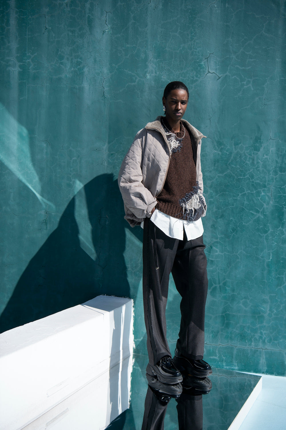それを私なりに解釈し、服というフィルターを通して、今回は糸と編みという方法で、 表現させていただきました。リスペクトを込めて。