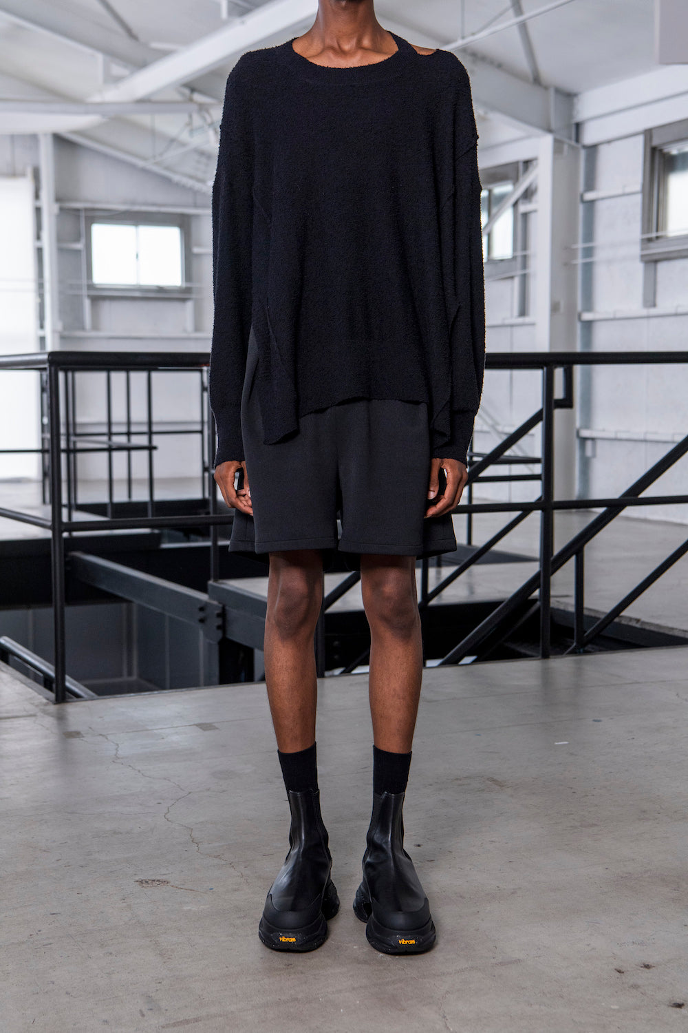 インサイドアウト仕様のシームラインや、脇のガーター編みによるベント仕立てなど、ディテールにもリヒト らしさを詰め込んだデザイナーお気に入りの一品。