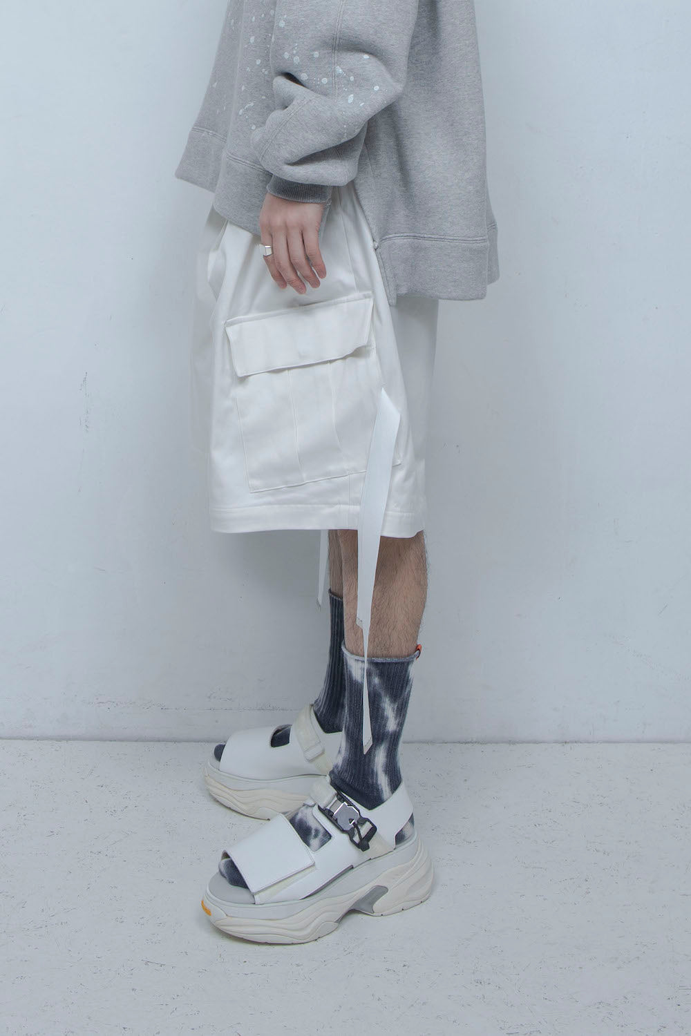 全て取り外していただくとハーフパンツになります。 カーゴパンツ本来の役務を担うディテールをしっかりと踏襲しながら、リヒトならではのパターンアレンジで他には ないカーゴパンツに仕上げました。
