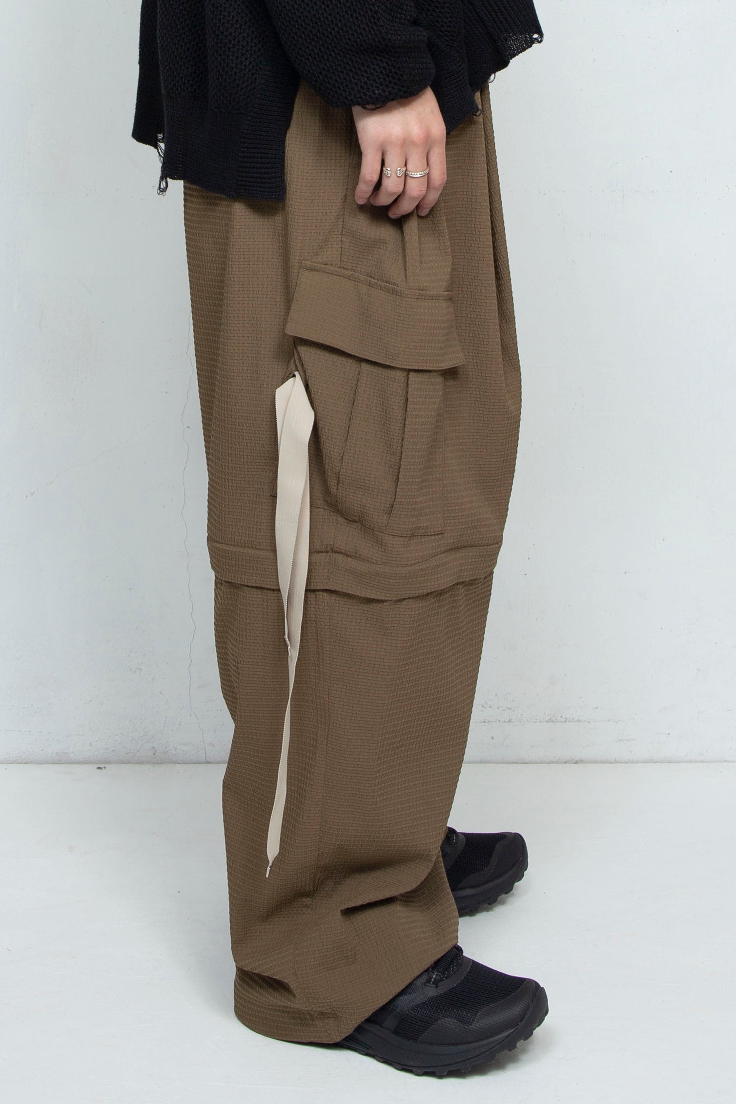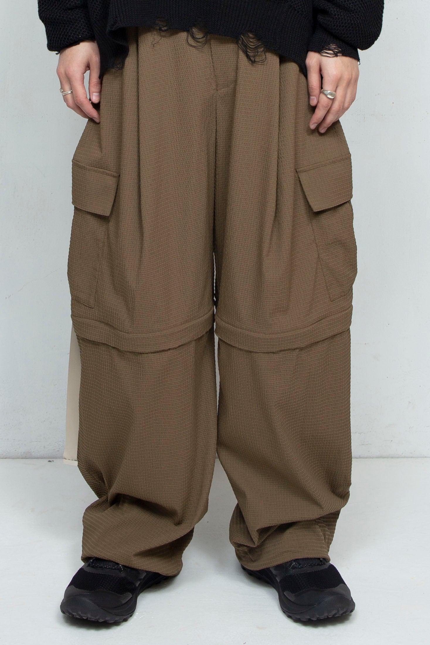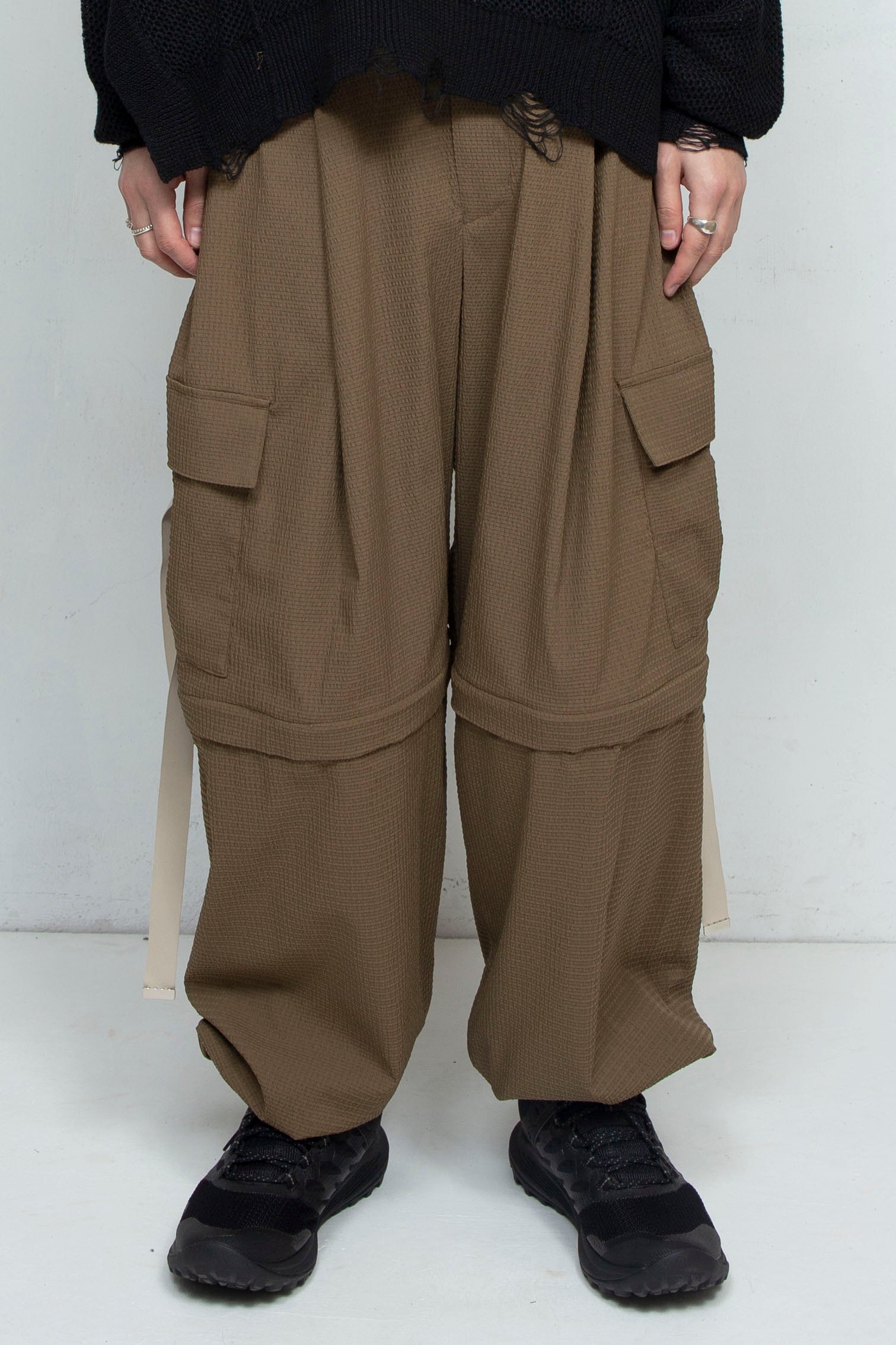 TORAY(東レ)の最先端加工技術が詰まった快適高通期織物=Dot Air®を採用した、デタッチャブルワイドカーゴパンツ。