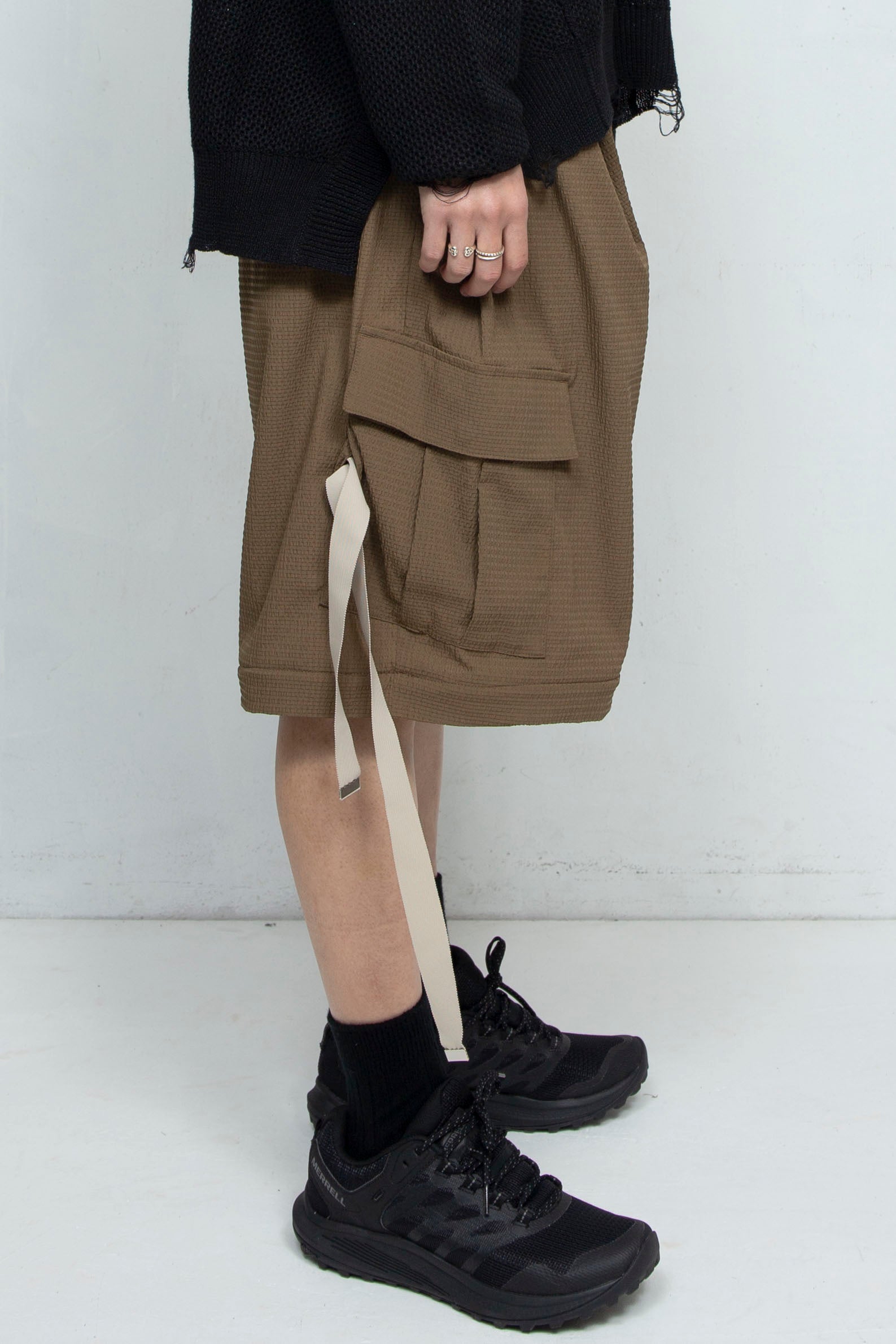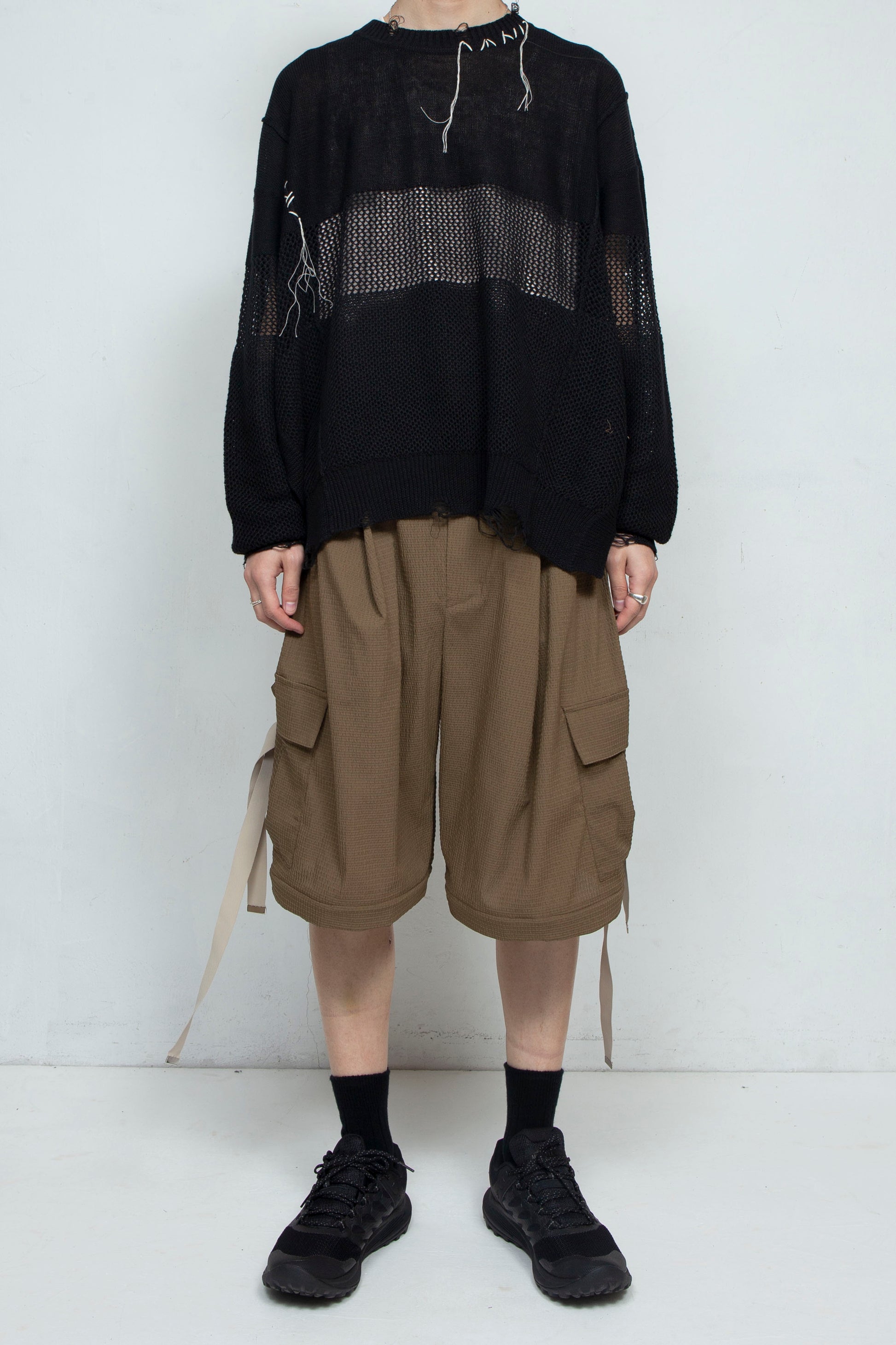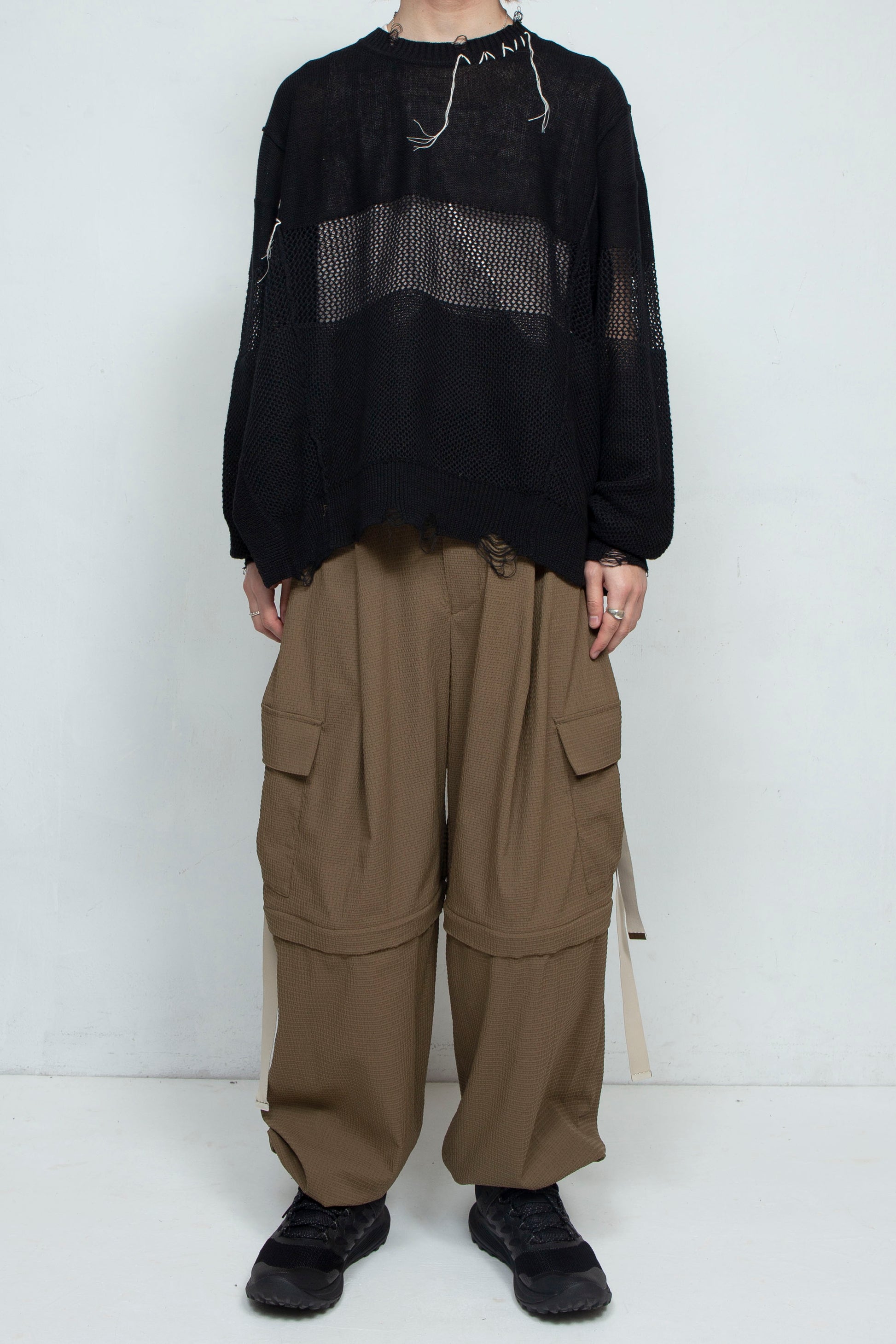 24SSから継続リリースのブランドアイコンアイテムであるPT05=デタッチャブルワイドカーゴパンツを、今シーズンはよりライトな 雰囲気に仕上げました。