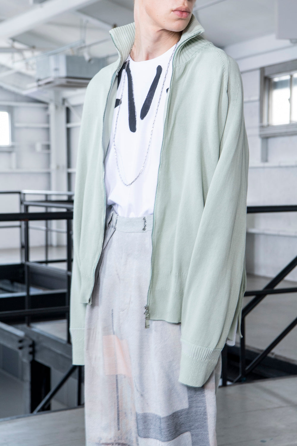 袖や首回りは従来のリヒトと比べてややシャープなサイジング 。コレクションでのスタイルのように、ミドラーとしてジャケットやブルゾンと組み合わせていただけるサイズ 感です。