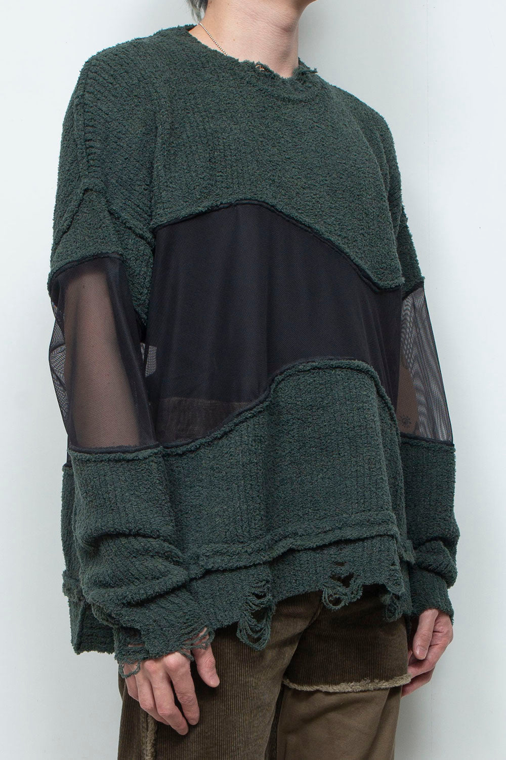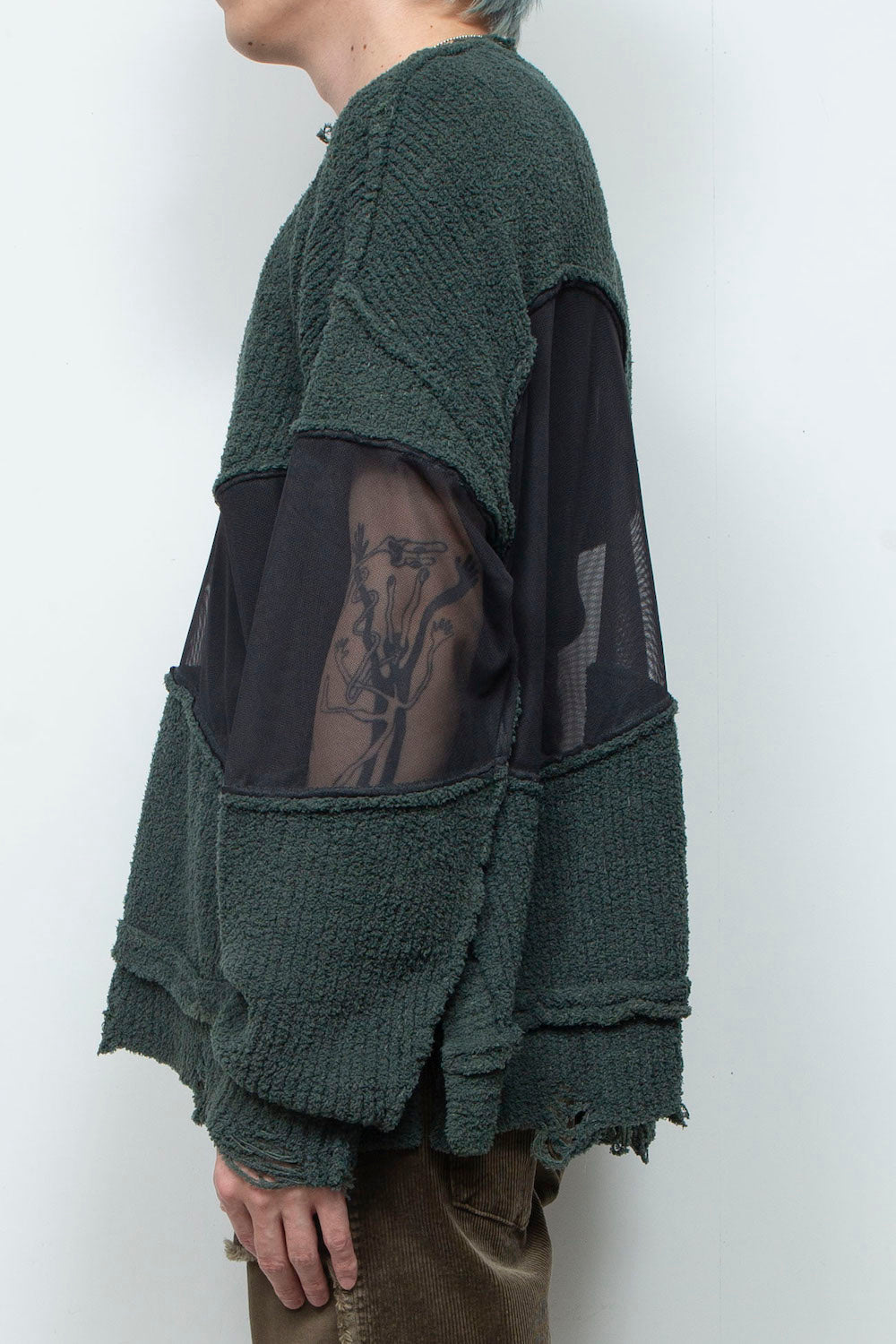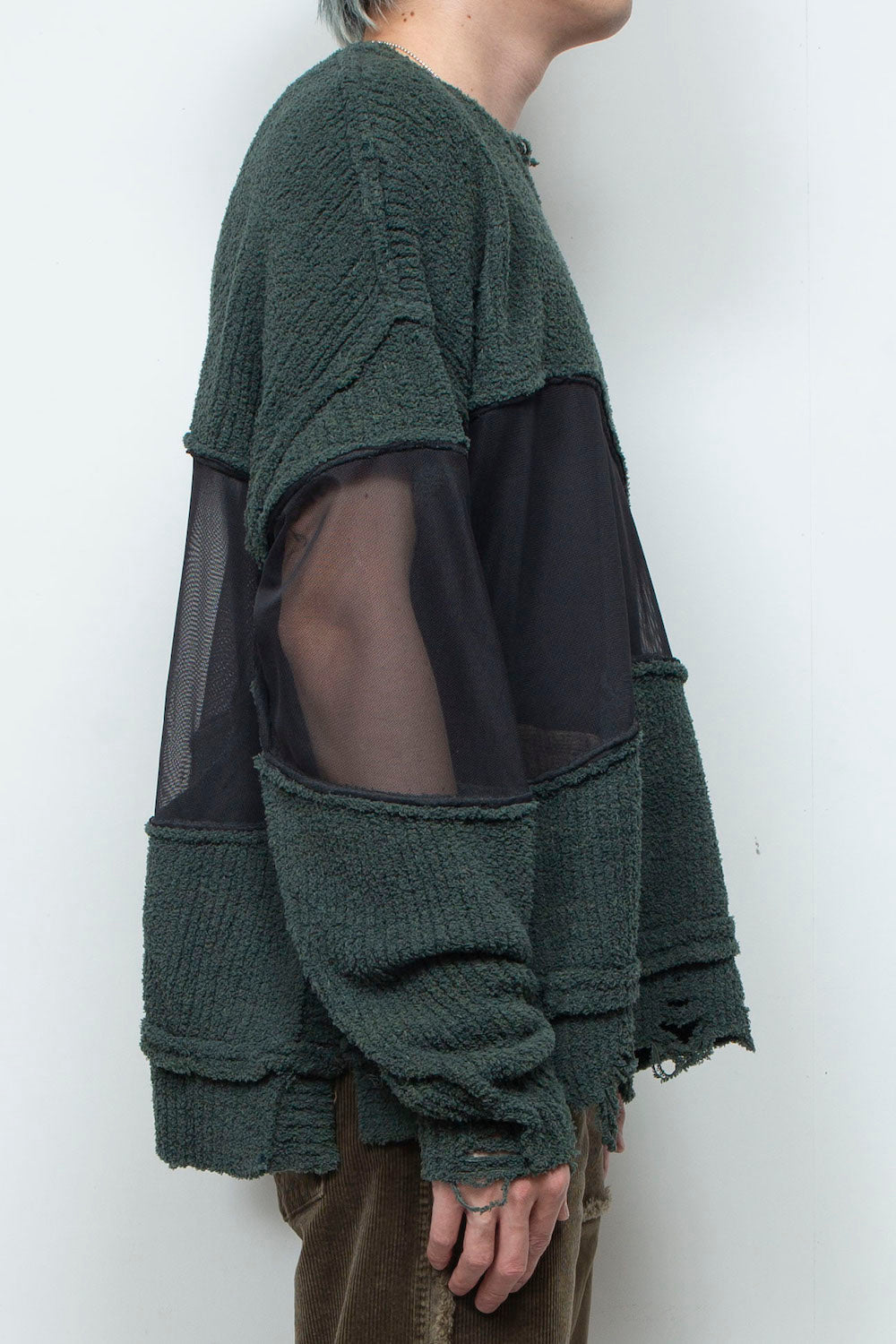 LB25AW-KN08 | ドッキングリバースクラッシュドセーター | BILLIARD GREEN