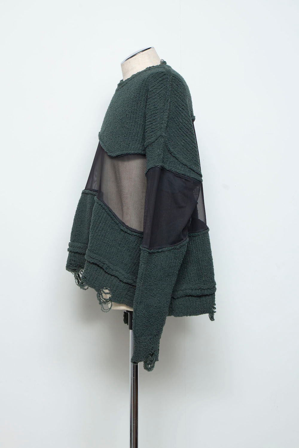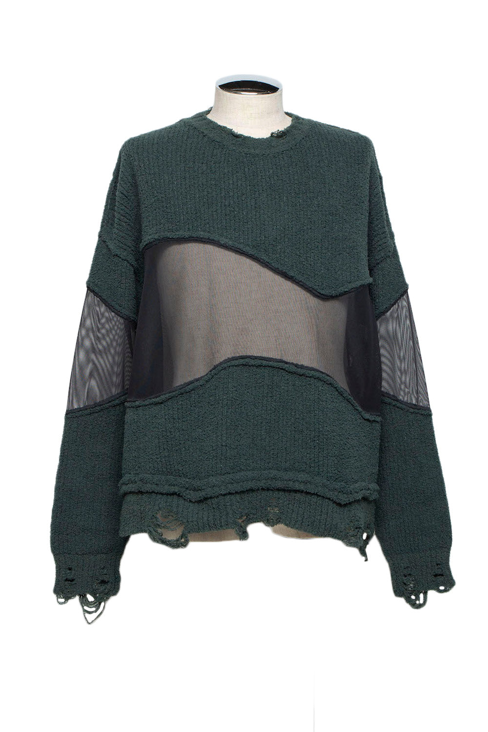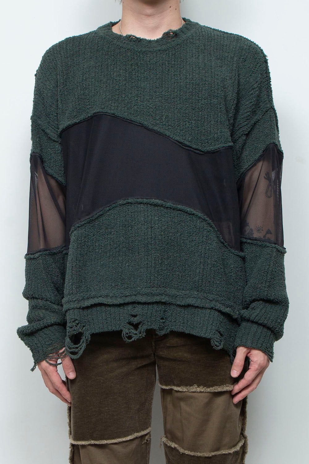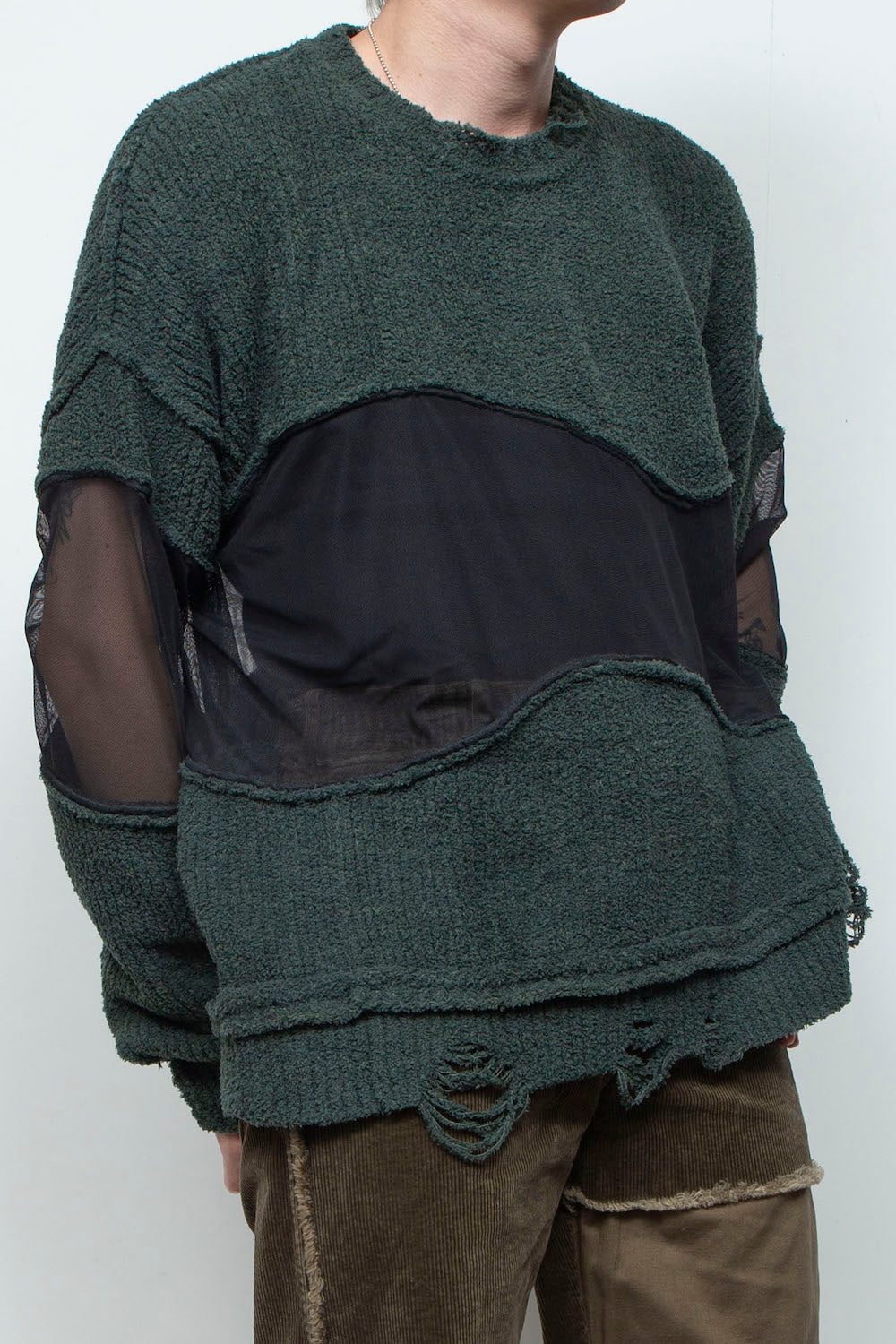 LB25AW-KN08 | ドッキングリバースクラッシュドセーター | BILLIARD GREEN