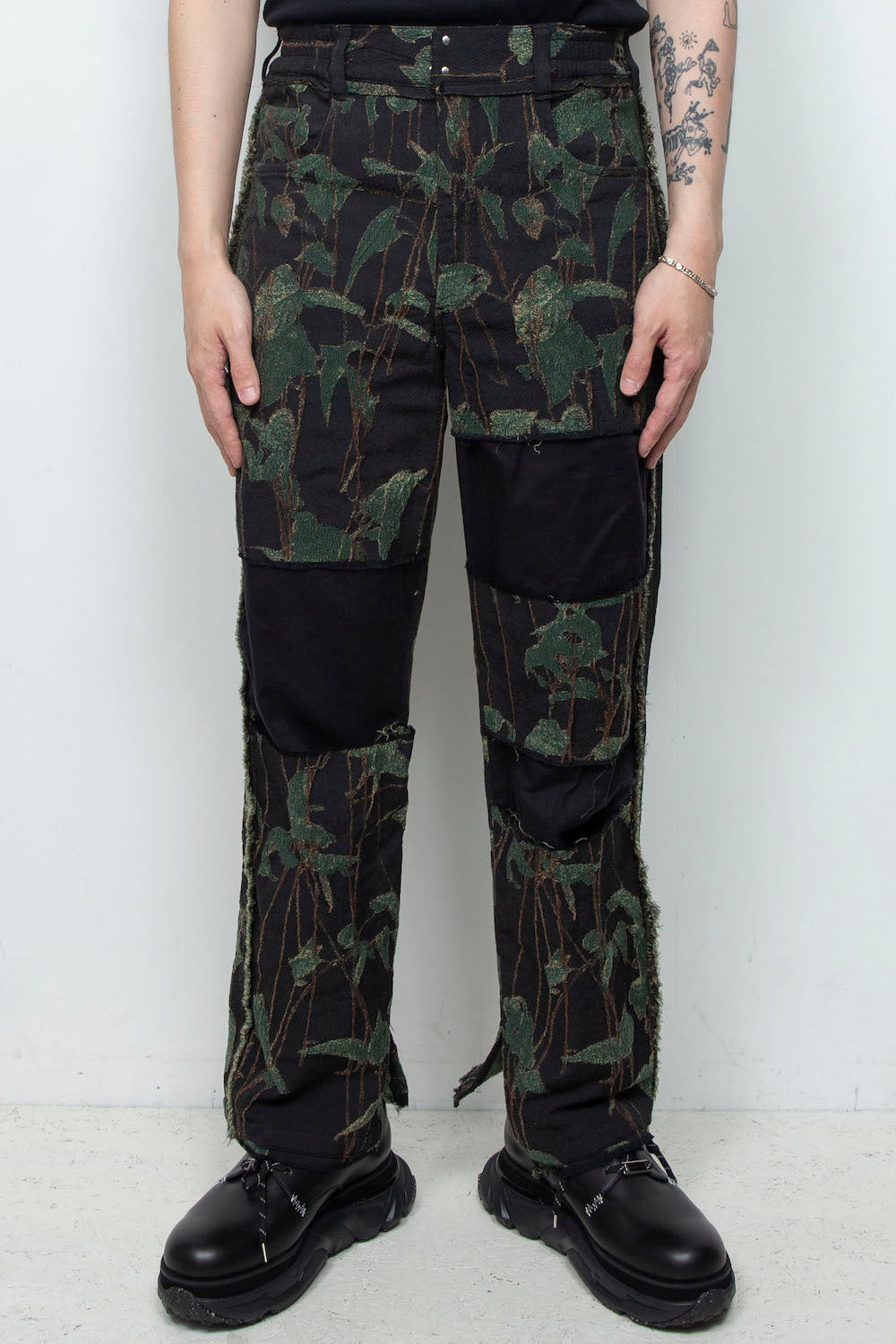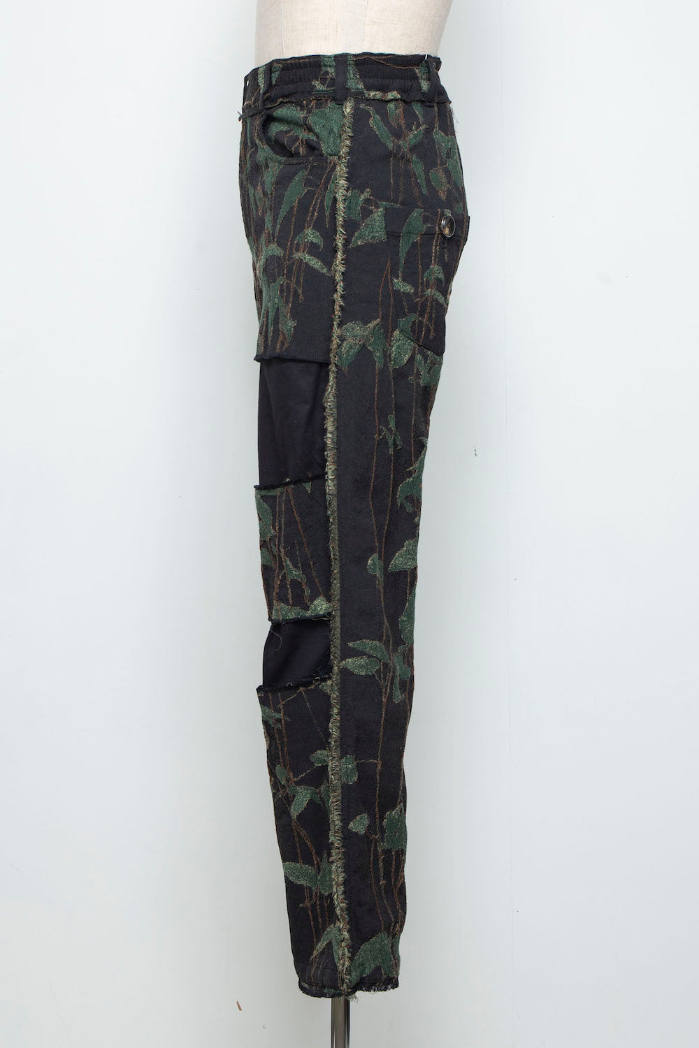 今季いちから新しく開発した育てる蔦ジャガードを贅沢に使用した、新型の再構築5ポケットパンツ。