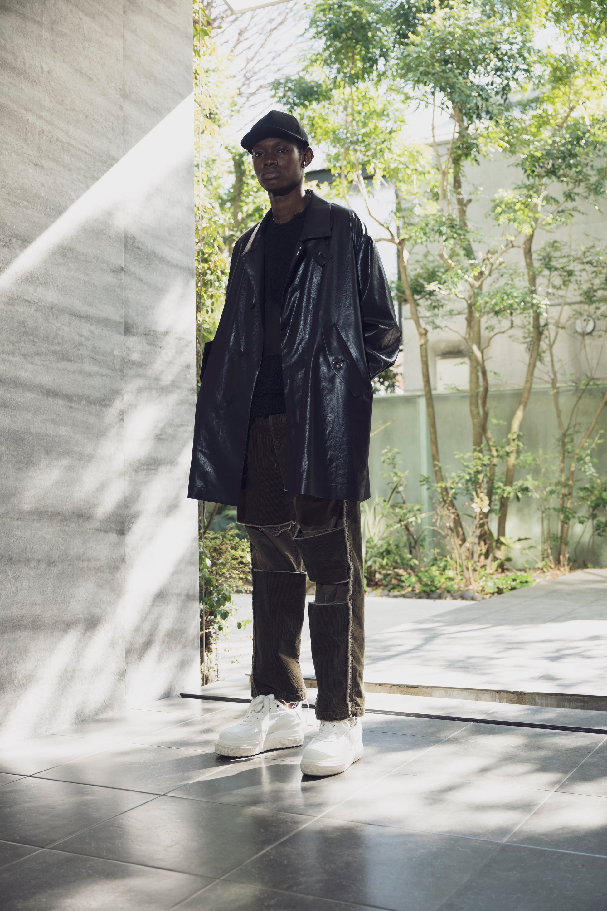 <LAST 1点> LB25AW-SHCO01-FFL | FAKE-FAKE LEATHER Ⅱ ステンカラーライトコート | BLACK