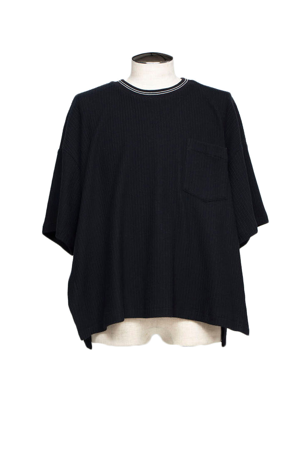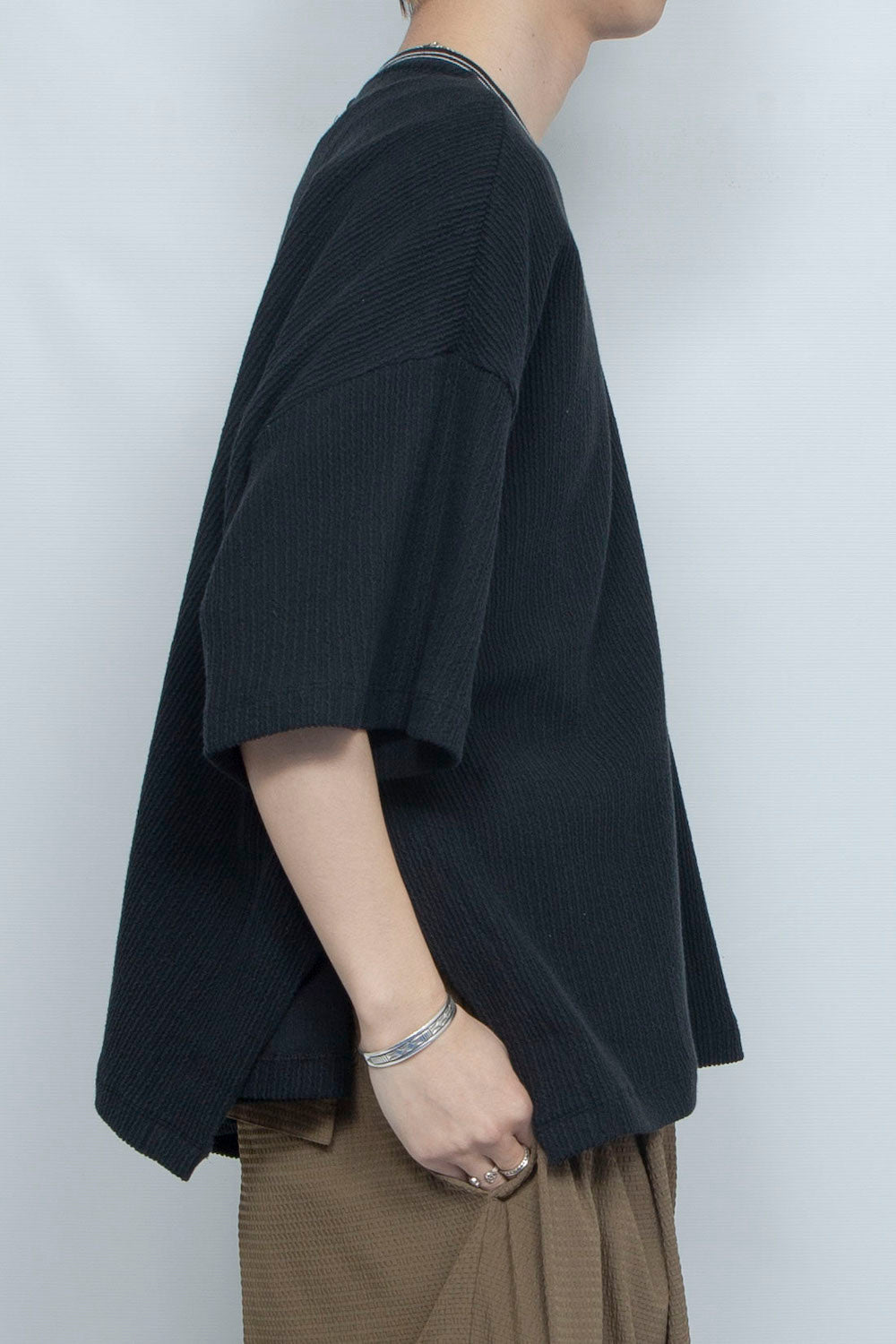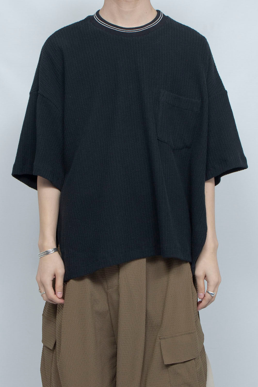 LB25SS-TE09-FRB |プリーツリブニットラインネックTシャツ | BLACK
